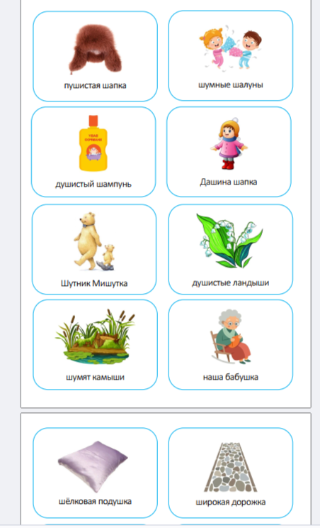 «Шапка — шапочка», «Мышка — мышонок», «Шишка — шишечка».