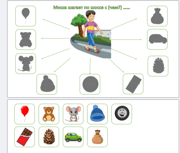 Подбираем действия к предметам: «Шмель — жужжит», «Кошка — шипит», «Малыш — шалит».