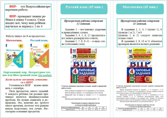Буклет «Что нужно знать родителям про ВПР» для 4 класса и для родителям