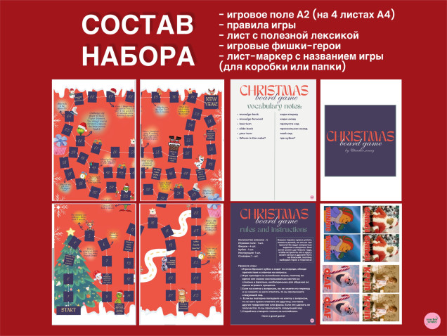 Эта настольная игра сделает предновогодние уроки более волшебными и чудесными. Идея игры заключается в том, чтобы помочь героям успеть добраться до дома. Они хотят успеть до Нового года, чтобы встретить его в кругу родных и близких🥹 В игре 72 поля и большая половина из них включает интересные вопросы и задания.
