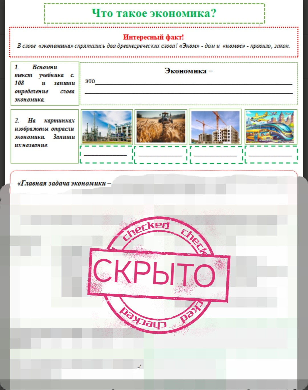 Рабочий лист для проверки знаний по окружающему миру 2 класс по теме "Что такое экономика?" содержит 1 интересный факт и 6 заданий