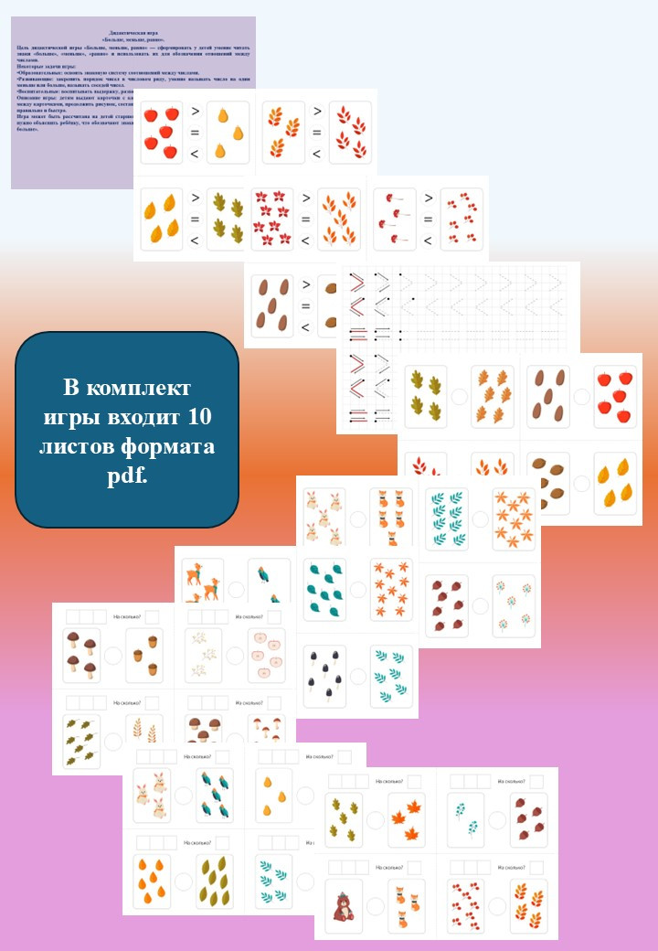 Цель дидактической игры «Больше, меньше, равно» — сформировать у детей умение читать знаки «больше», «меньше», «равно» и использовать их для обозначения отношений между числами.