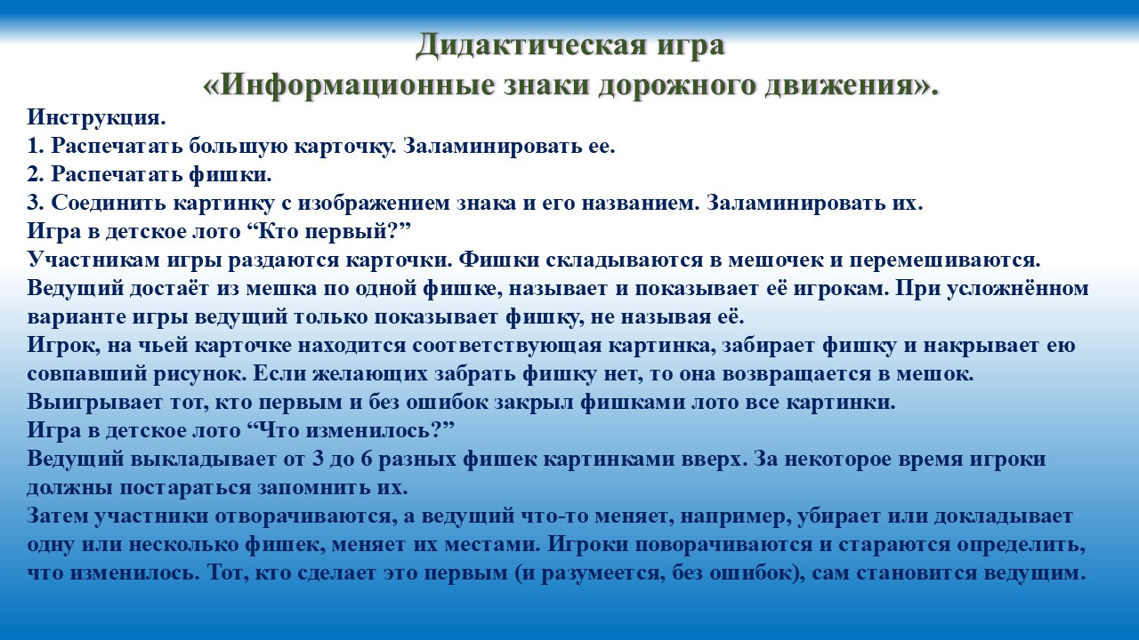 Дидактическая игра "Информационные дорожные знаки".