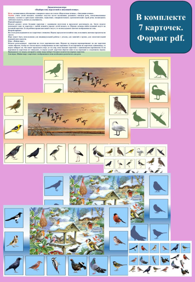 Для игры «Найди пару» карточки с изображением птиц необходимо распечатать два раза.