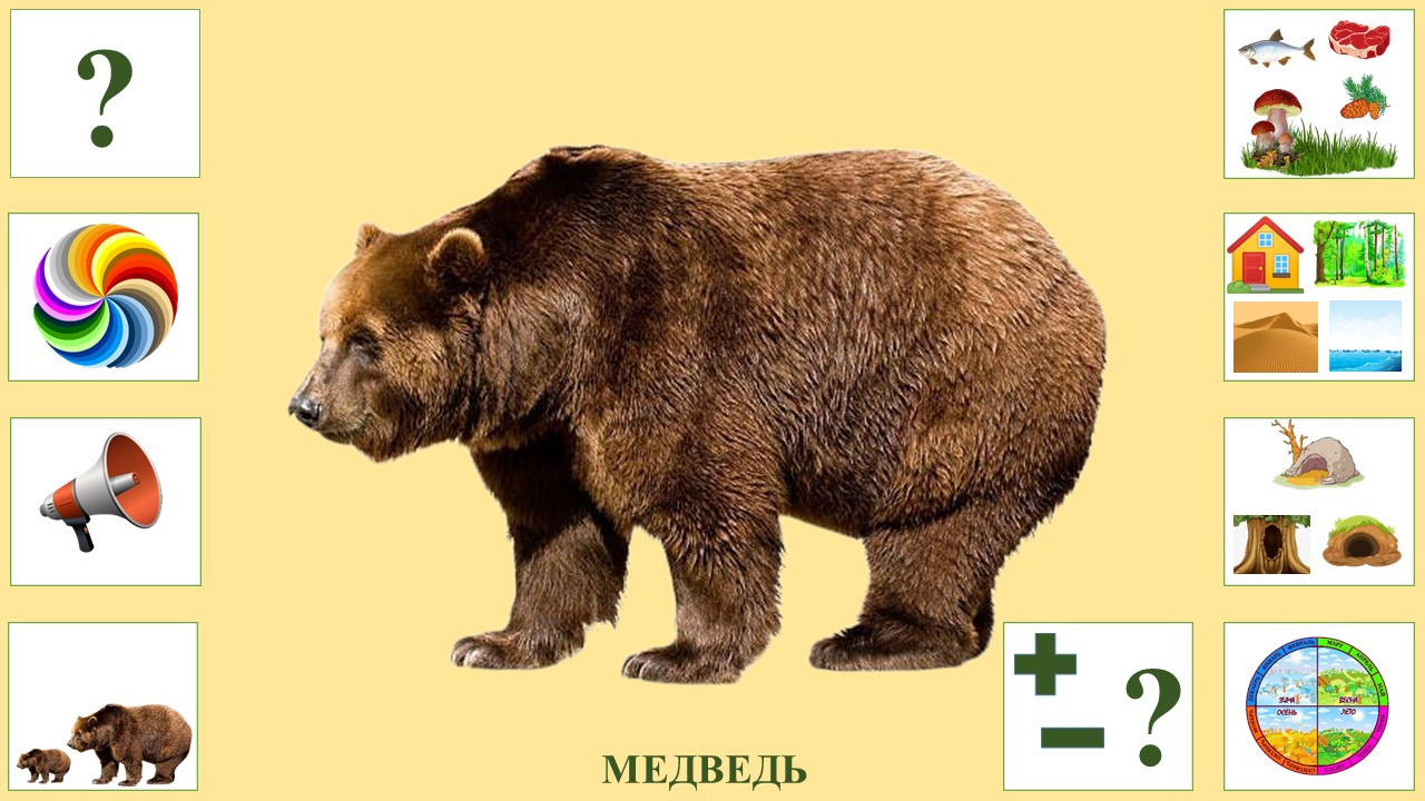 Цель: закрепление знаний детей о диких животных в процессе проговаривания признаков, используя план-схему.