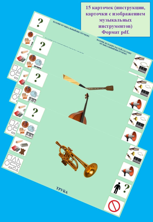 С помощью карточек схем дети смогут сами составить рассказ о том, или ином музыкальном инструменте.. Игру можно применять как во время образовательной деятельности, так и в самостоятельной деятельности детей.