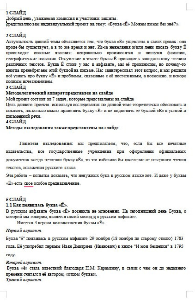 Доклад для защиты индивидуального проекта «Буква «Ё» Можем ли мы без неё?». (4 страницы)