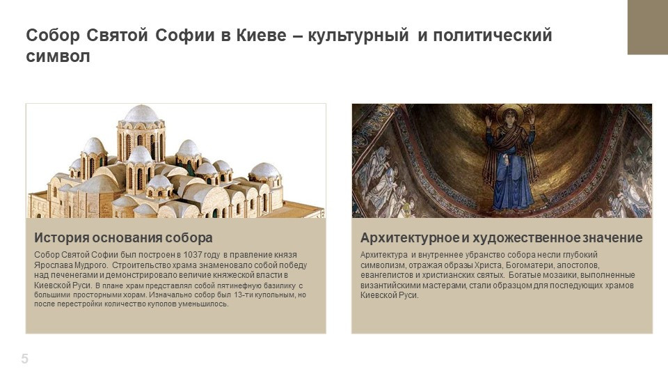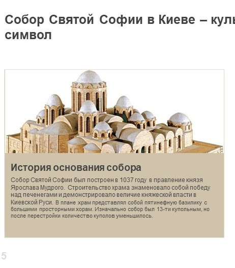 Уже в XI в., сразу после крещения, начинается активное возведение на Руси великолепных храмов, украшенных мозаиками, росписями (фресками), иконами. Многие из них не сохранились до наших дней, либо сильно пострадали от разрушений, пожаров и войн. Но некоторые памятники до сих пор хранят историю и культуру раннихстолетий христианства на Руси. Большинство каменных храмов было возведено в Киеве и Чернигове приглашенными византийскими мастерами (Десятинная церковь. Храм Софии киевской, Спасо-Преображенский и Борисо-Глебский соборы в Чернигове, Церковь Праскевы Пятницы). В некоторых из них сохранилось великолепное мозаичное убранство XII века с изображениями библейских сцен. Русскому искусству эпохи Средневековья суждено было стать новым воплощением православного искусства, по своему значению равного византийскому