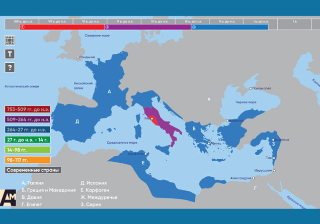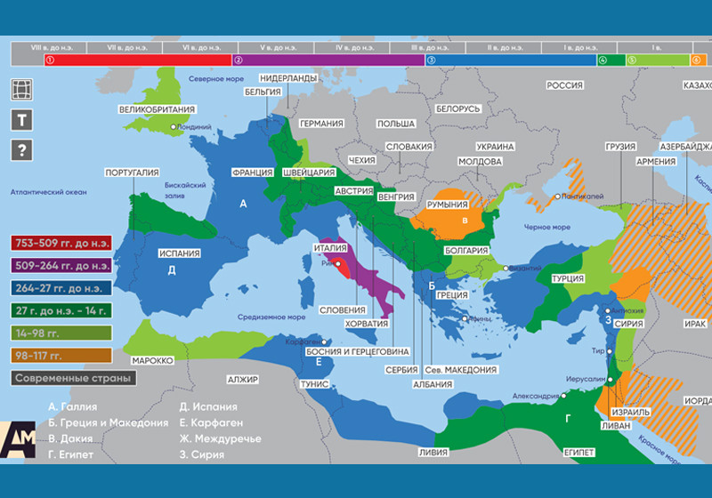 территории Древнего Рима. Позволяет увидеть территории каких современные