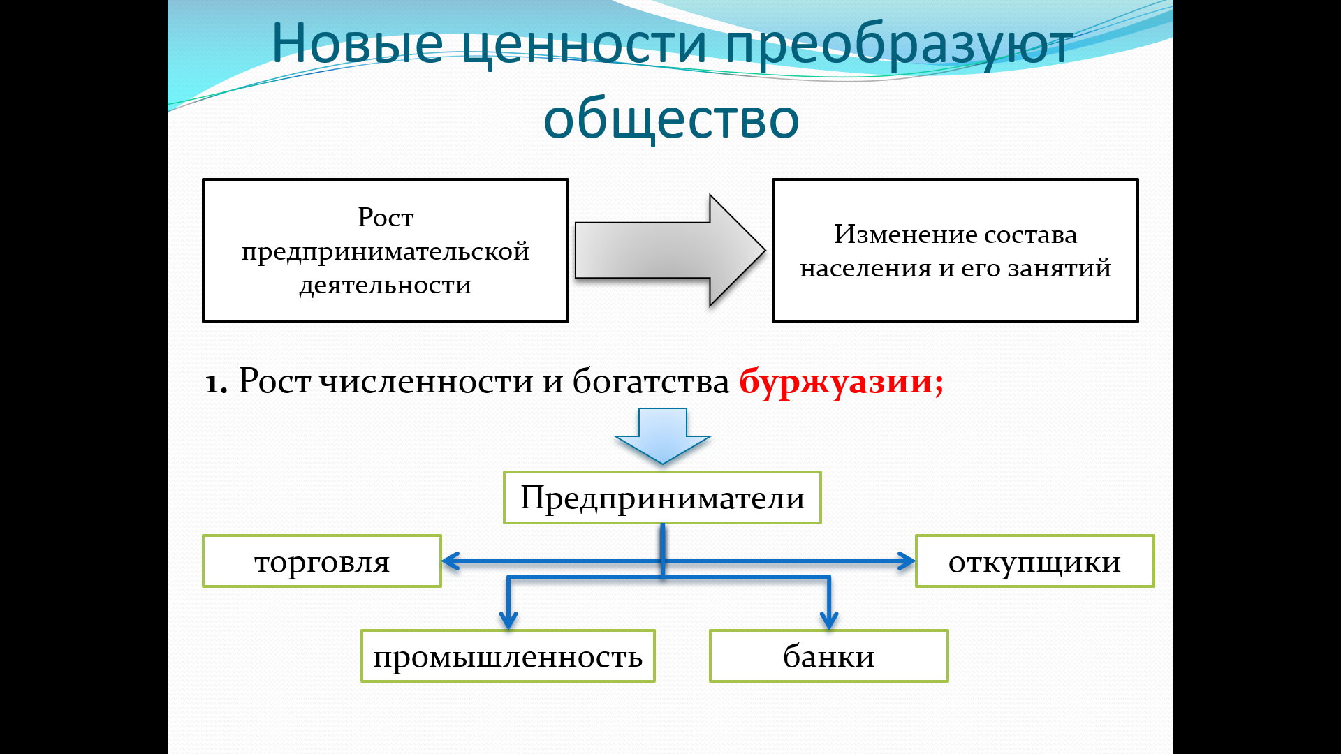 Показать рост численности и влияния буржуазии.