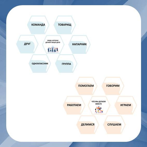 1. Гексы "Что мы делаем вместе" - помогает определиться и визуализировать примеры действий в команде.