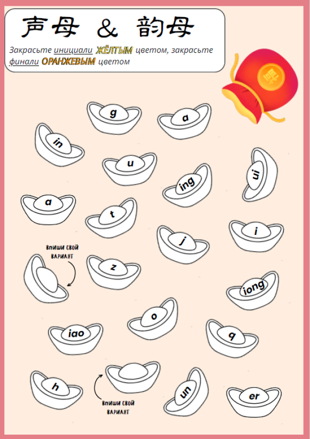Печатный/дополнительный/ раздаточный материал для отработки темы "Слоги / инициали и финали в китайском языке"
