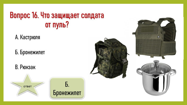 Игра состоит из вопросов, которые охватывают разные аспекты военной истории и современности: