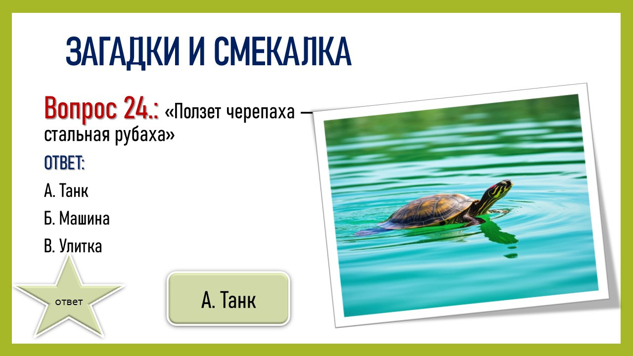 Вопрос 24. «Ползет черепаха — стальная рубаха» (загадка)