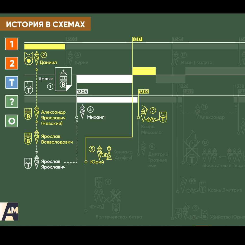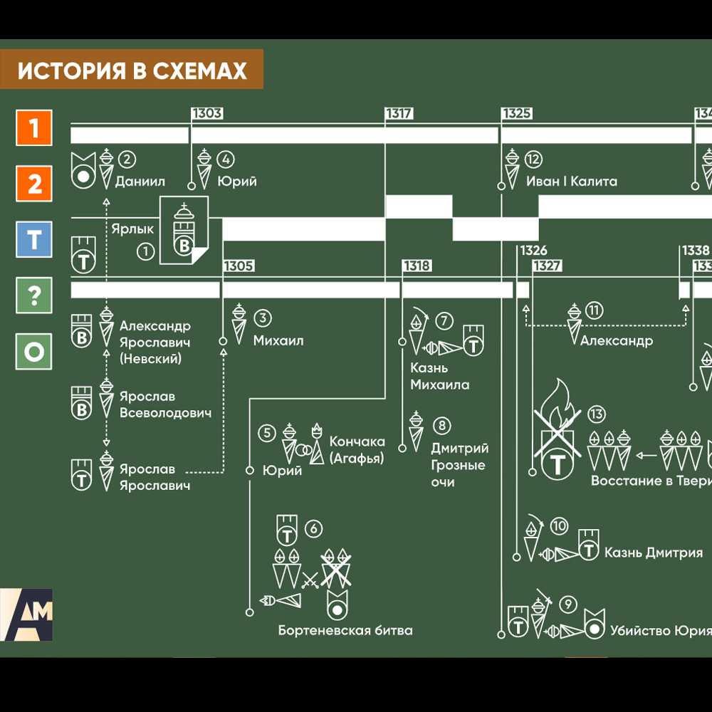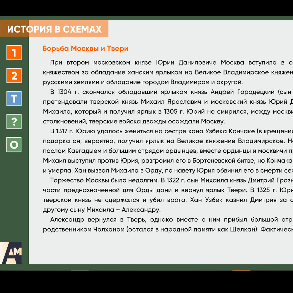 Интерактивная схема - Борьба Москвы и Твери Схема для объяснения сложных вопросов курса истории. Может использоваться в статичном и интерактивном форматах.