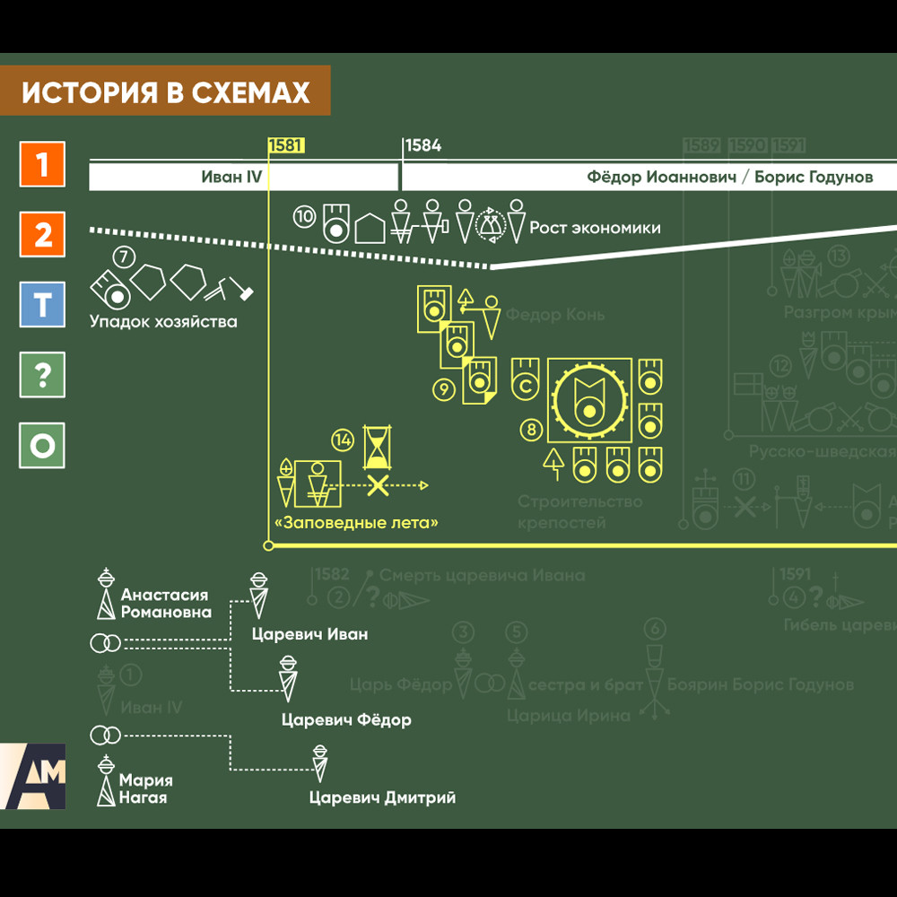 Интерактивная схема - Конец династии Рюриковичей Схема для объяснения сложных вопросов курса истории. Может использоваться в статичном и интерактивном форматах.