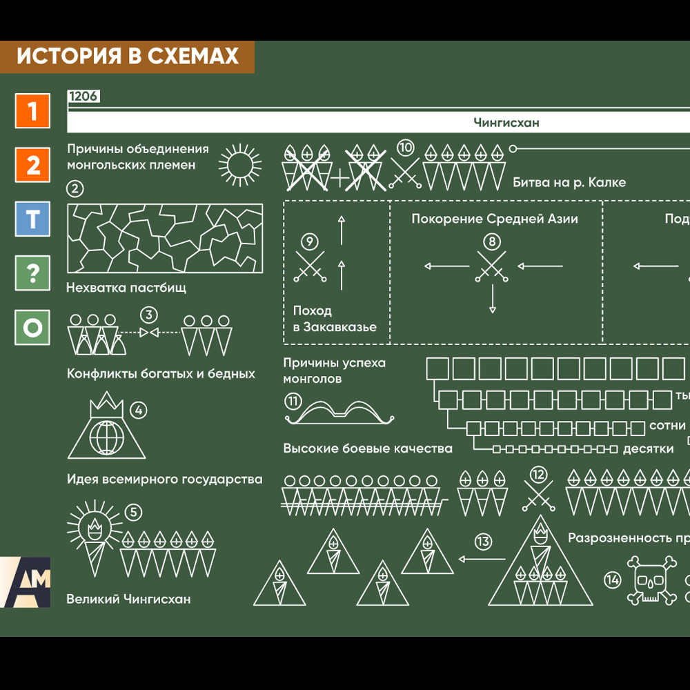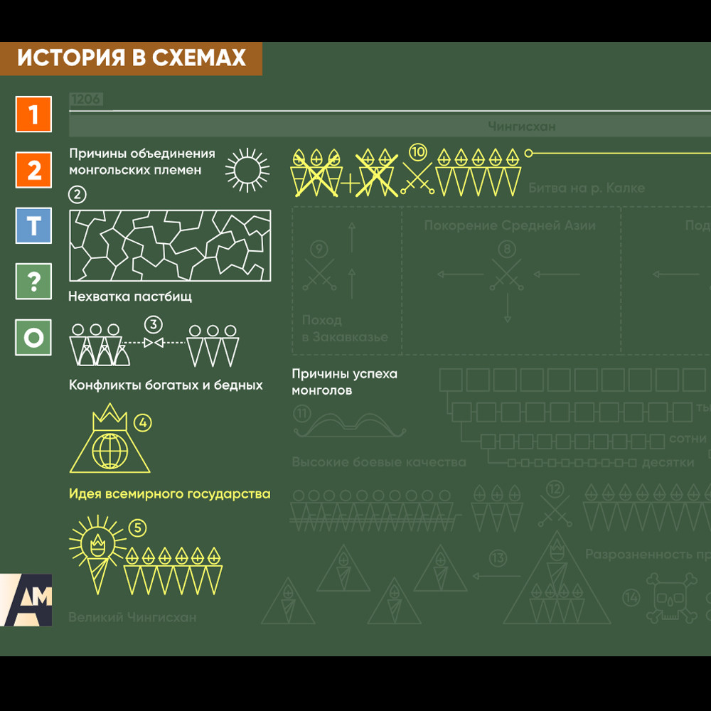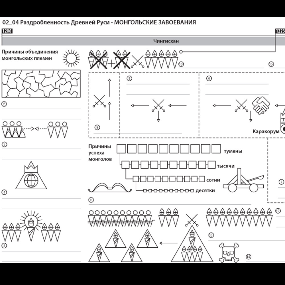 Интерактивная схема - Монгольские завоевания Схема для объяснения сложных вопросов курса истории. Может использоваться в статичном и интерактивном форматах.