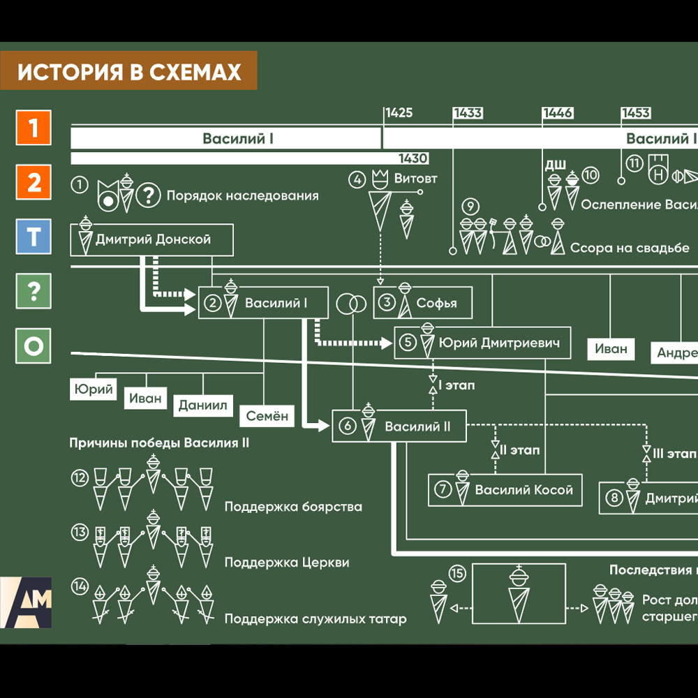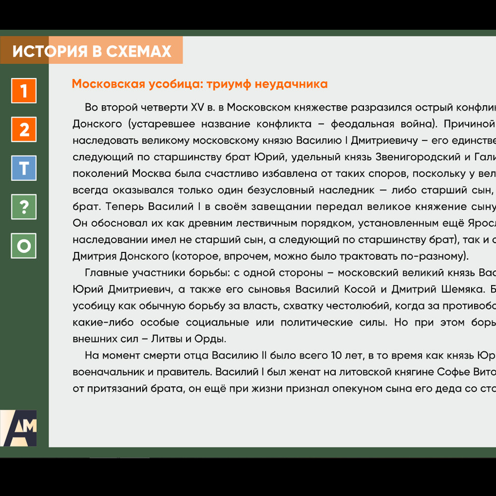 Интерактивная схема - Московская усобица: триумф неудачника Схема для объяснения сложных вопросов курса истории. Может использоваться в статичном и интерактивном форматах.