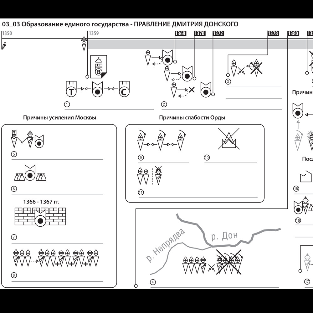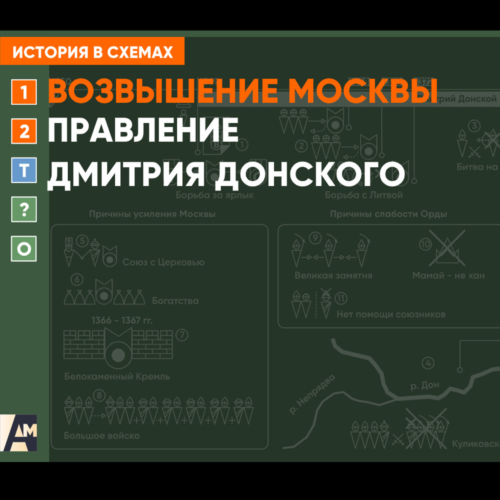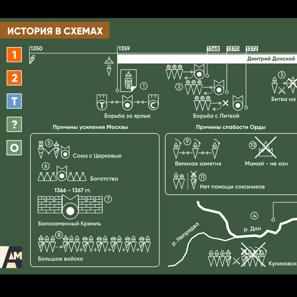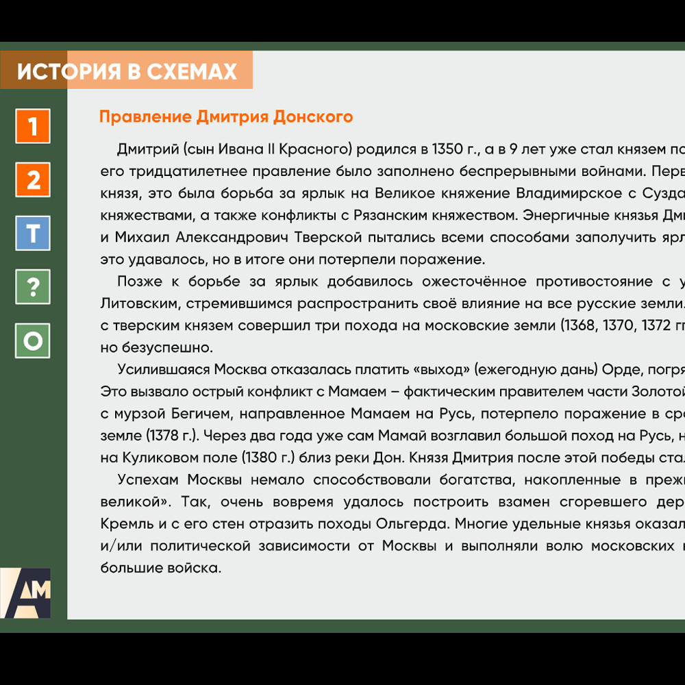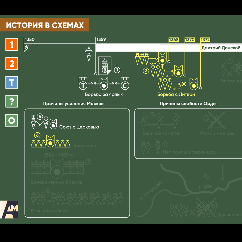 Интерактивная схема - Правление Дмитрия Донского Схема для объяснения сложных вопросов курса истории. Может использоваться в статичном и интерактивном форматах.
