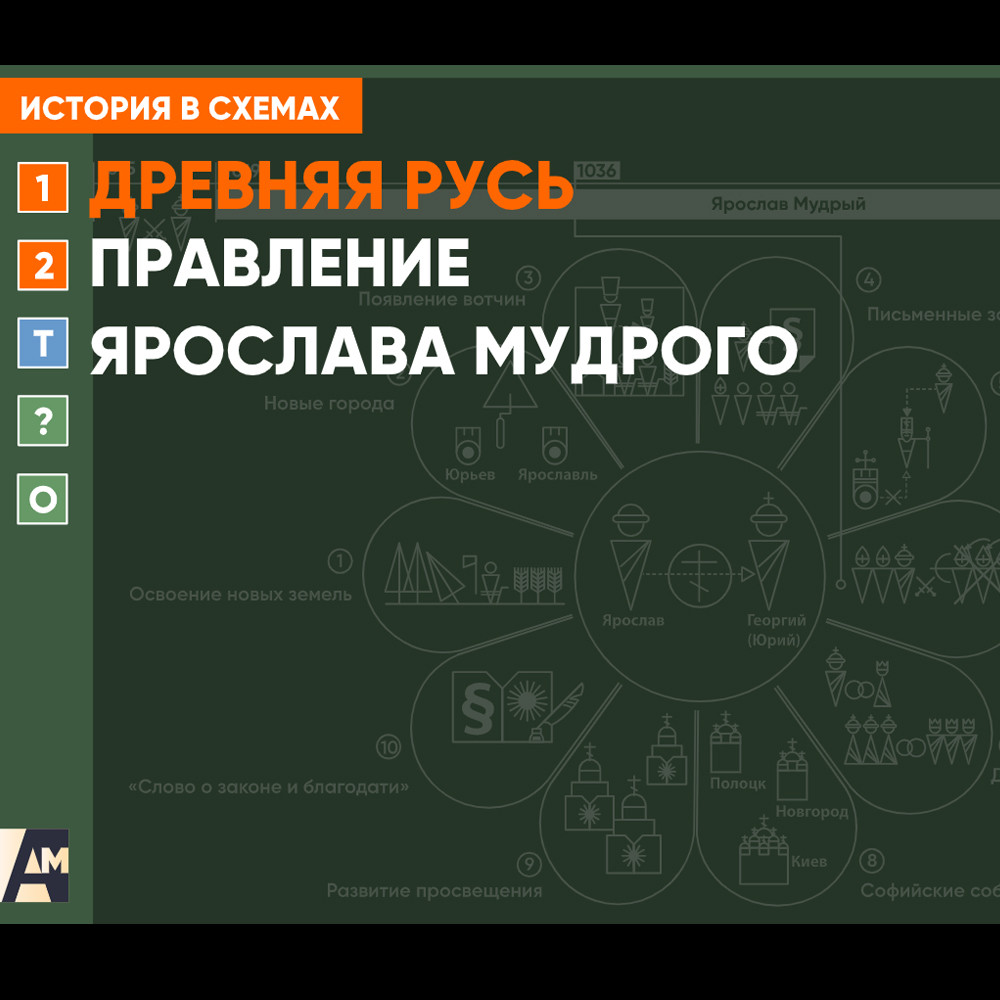 Интерактивная схема - Правление Ярослава Мудрого Схема для объяснения сложных вопросов курса истории. Может использоваться в статичном и интерактивном форматах.