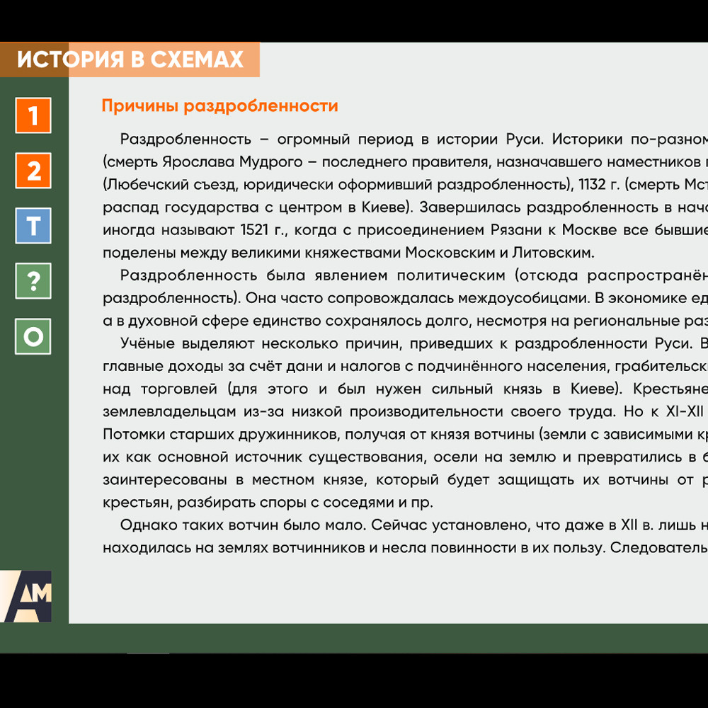 Интерактивная схема - Причины раздробленности Схема для объяснения сложных вопросов курса истории. Может использоваться в статичном и интерактивном форматах.
