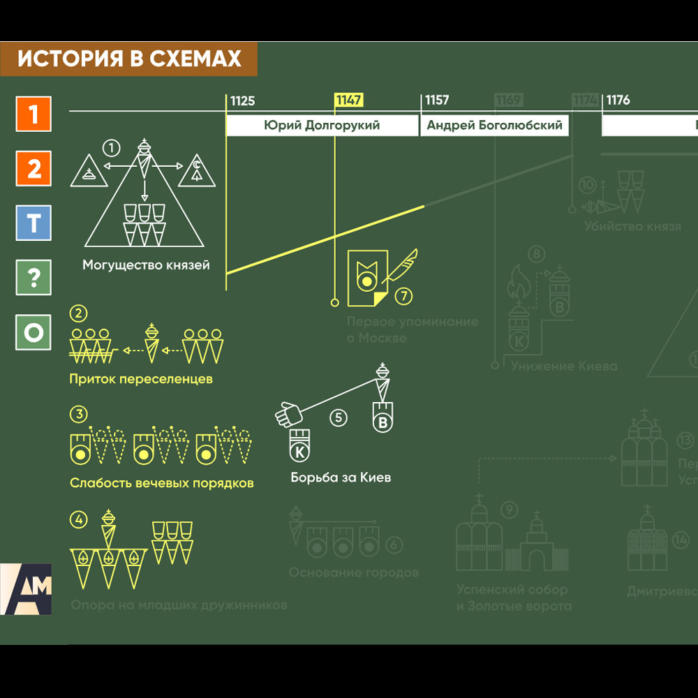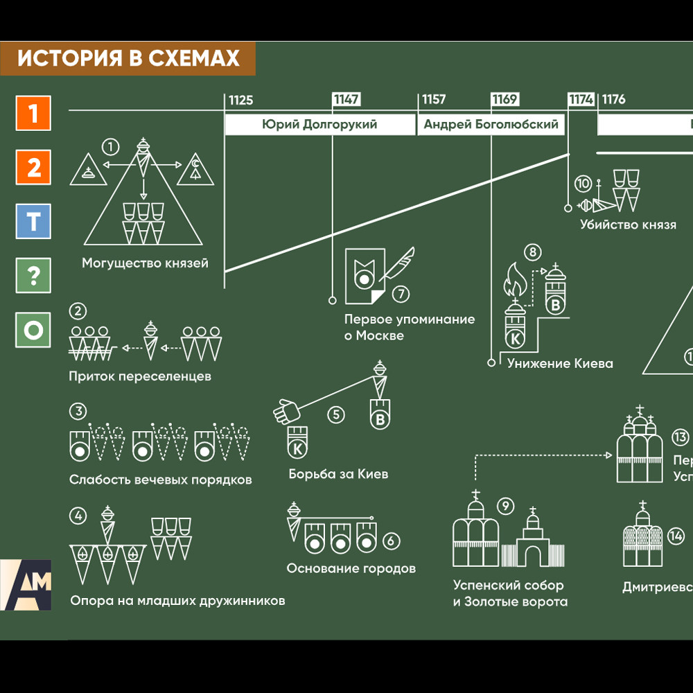 Интерактивная схема - Суздальская земля Схема для объяснения сложных вопросов курса истории. Может использоваться в статичном и интерактивном форматах.