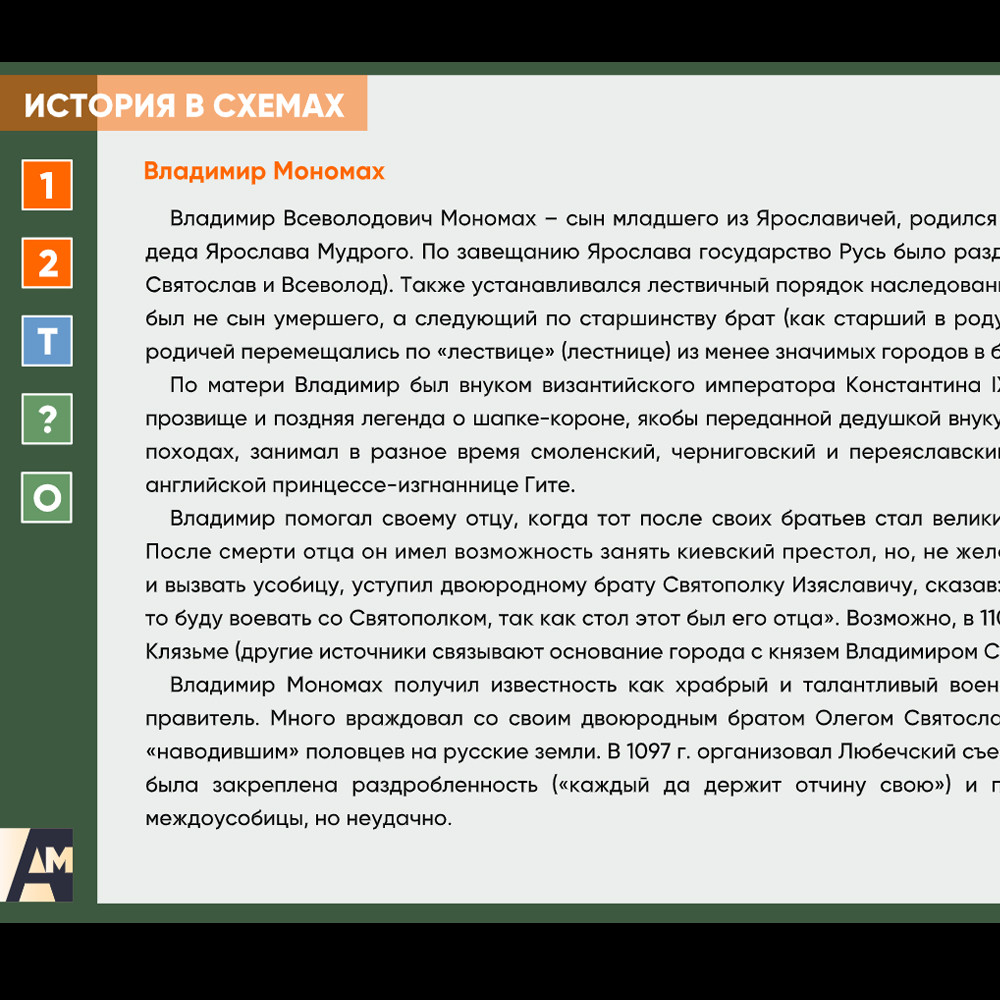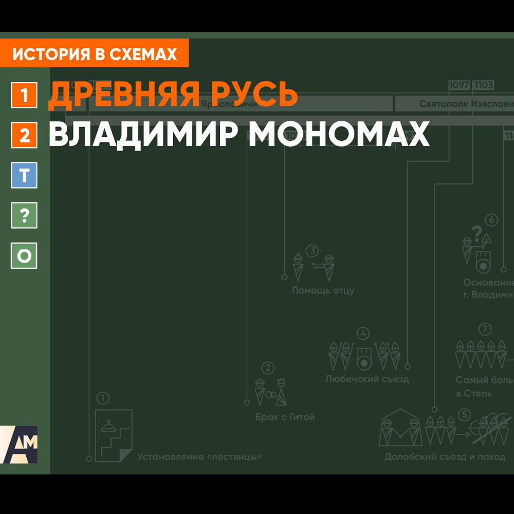 Интерактивная схема - Владимир Мономах Схема для объяснения сложных вопросов курса истории. Может использоваться в статичном и интерактивном форматах.