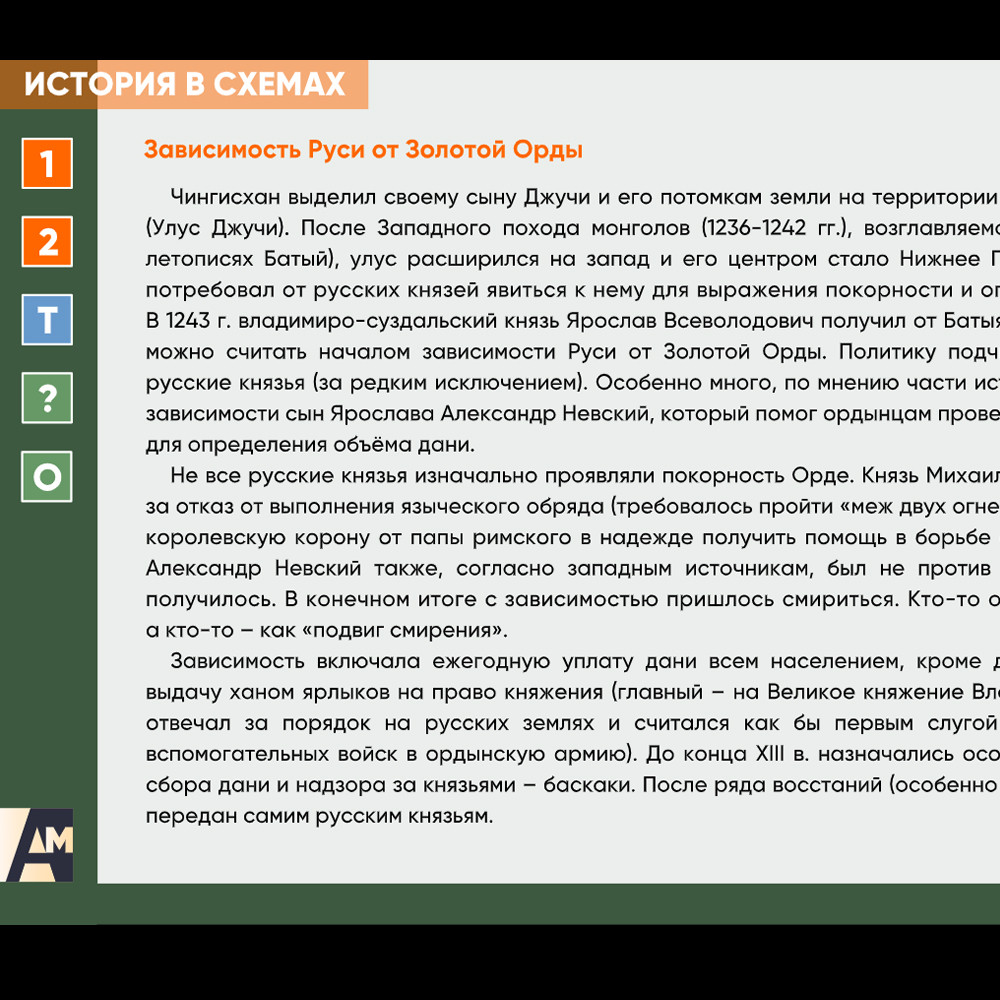 Интерактивная схема - Зависимость Руси от Золотой Орды