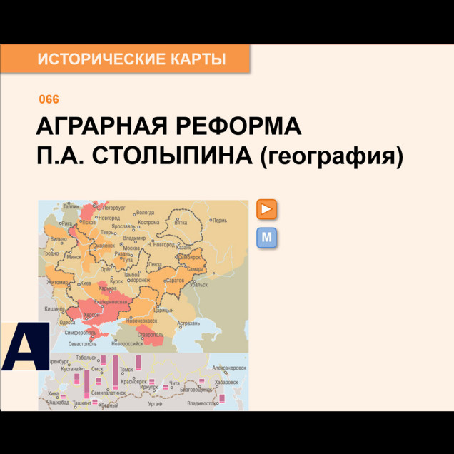Карта - Аграрная реформа П.А. Столыпина Интерактивная карта (презентация Power Point) с пояснительным текстом и заданиями для учеников.