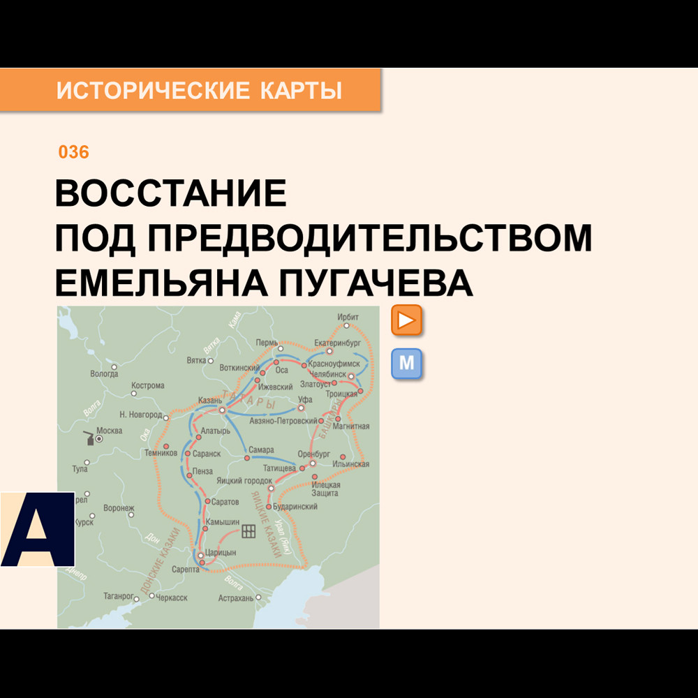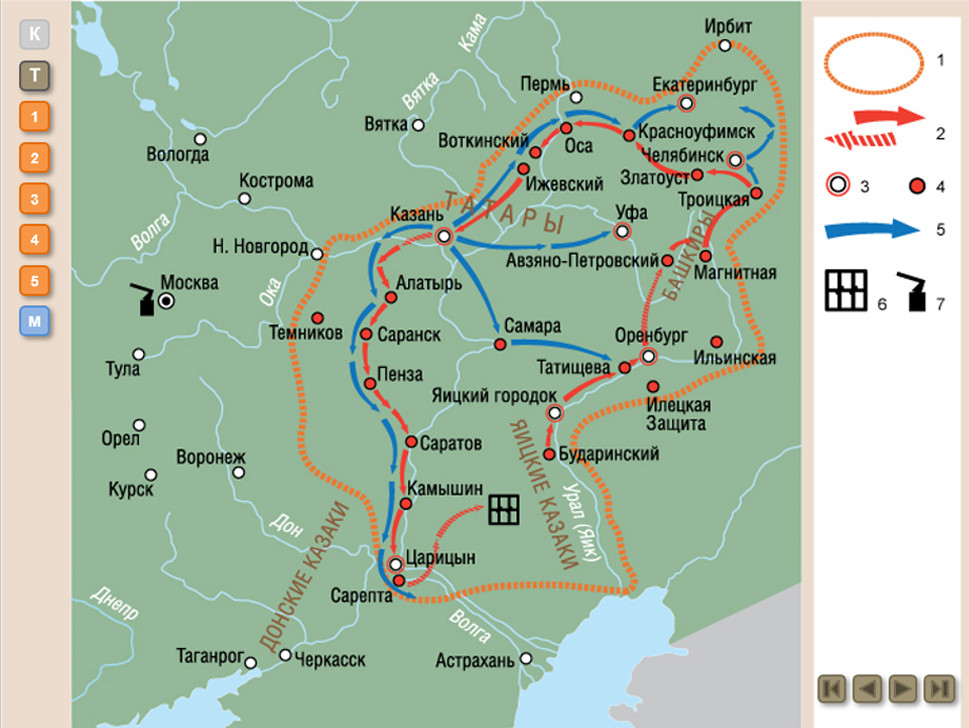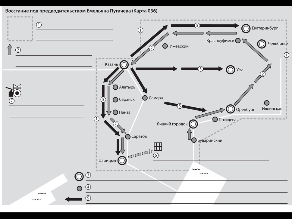 3. Карта - Восстание под предводительством Е. Пугачева