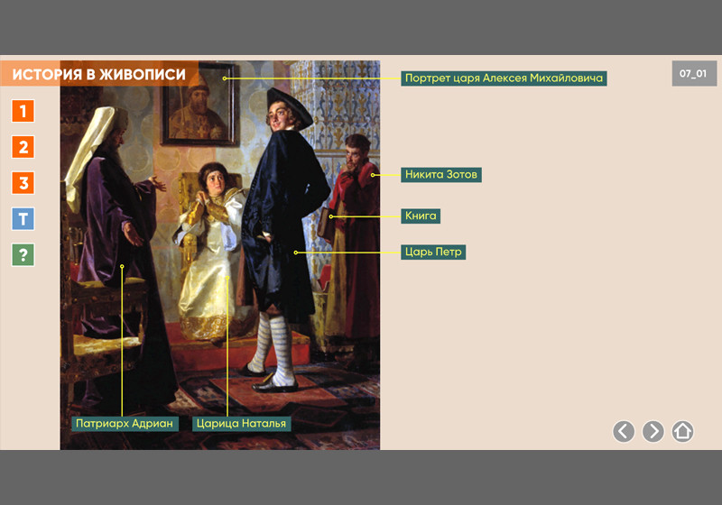 Натальей, патриархом Адрианом и учителем Зотовым», Николай Неврев