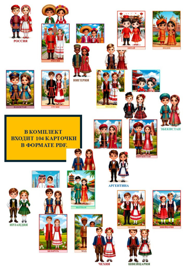 Такие карточки помогают детям познакомиться с различными народами мира, их традициями и обычаями. Работа с ними расширяет кругозор и любознательность ребёнка, улучшает память и внимание.