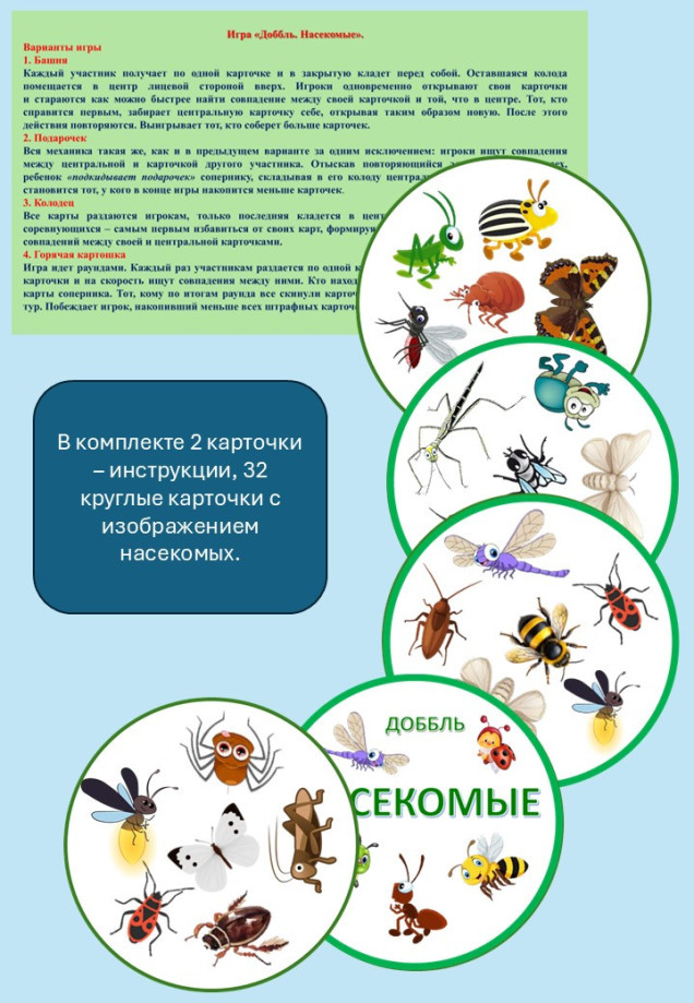 Игра «Доббль» — простая и увлекательная карточная игра, предназначенная для детей старшего дошкольного возраста. Она развивает внимание и скорость реакции. Название игры произошло от английского глагола to dobble («хватать», «быстро хвататься»).
