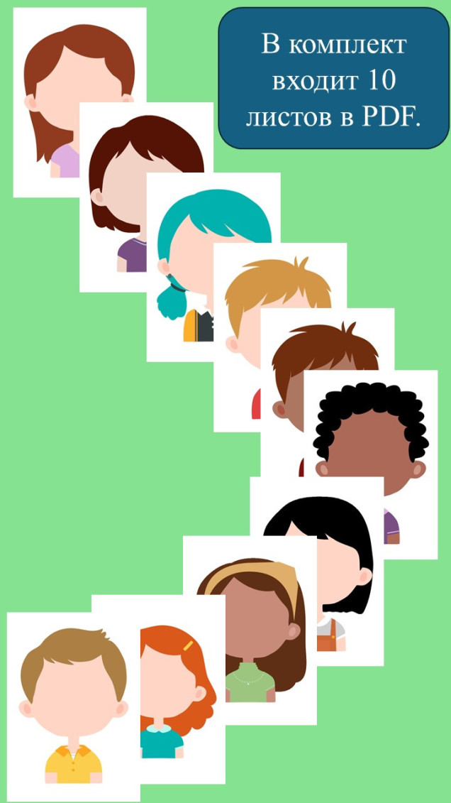 Задание направлено на развитие воображения, внимания и зрительной памяти, помогает закрепить и уточнить представление детей о частях лица.