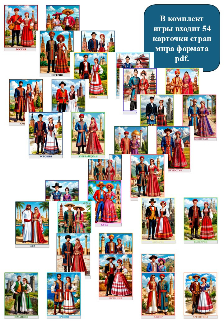Такие карточки помогают детям познакомиться с различными народами мира, их традициями и обычаями. Работа с ними расширяет кругозор и любознательность ребёнка, улучшает память и внимание.