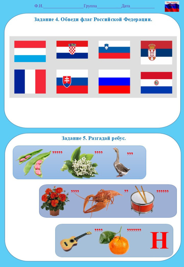 - закреплять знания детей о государственных символах России, флаге, гербе;