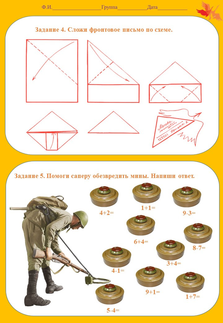 Некоторые из предложенных заданий будут иметь не только обучающий характер, но и творческий ( "Сложи письмо-треугольник").