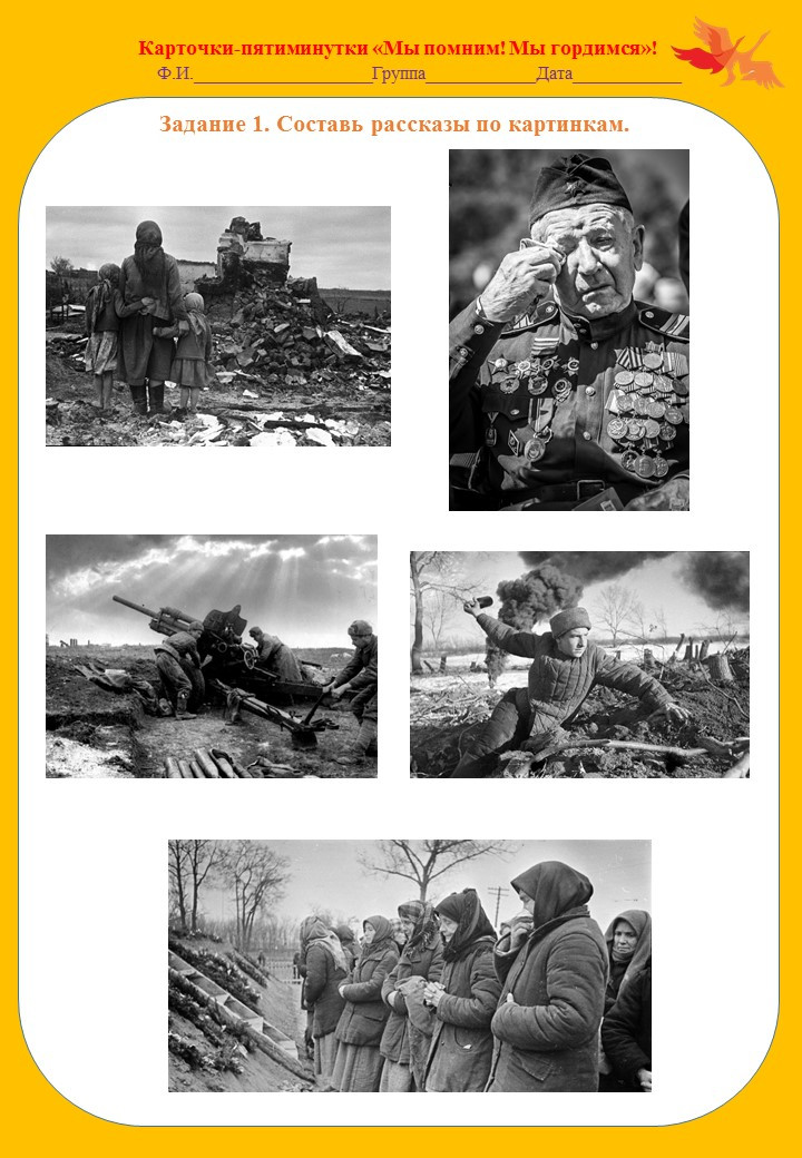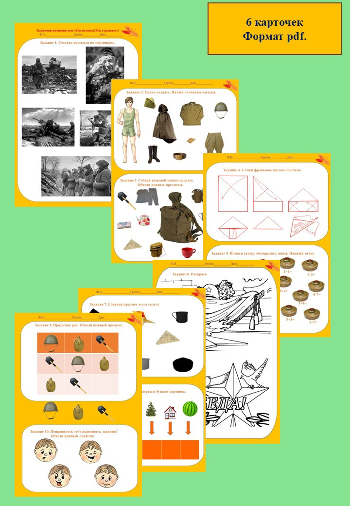Карточки-пятиминутки "Мы помним! Мы гордимся!" рассчитаны на работу с детьми старшего дошкольного возраста.