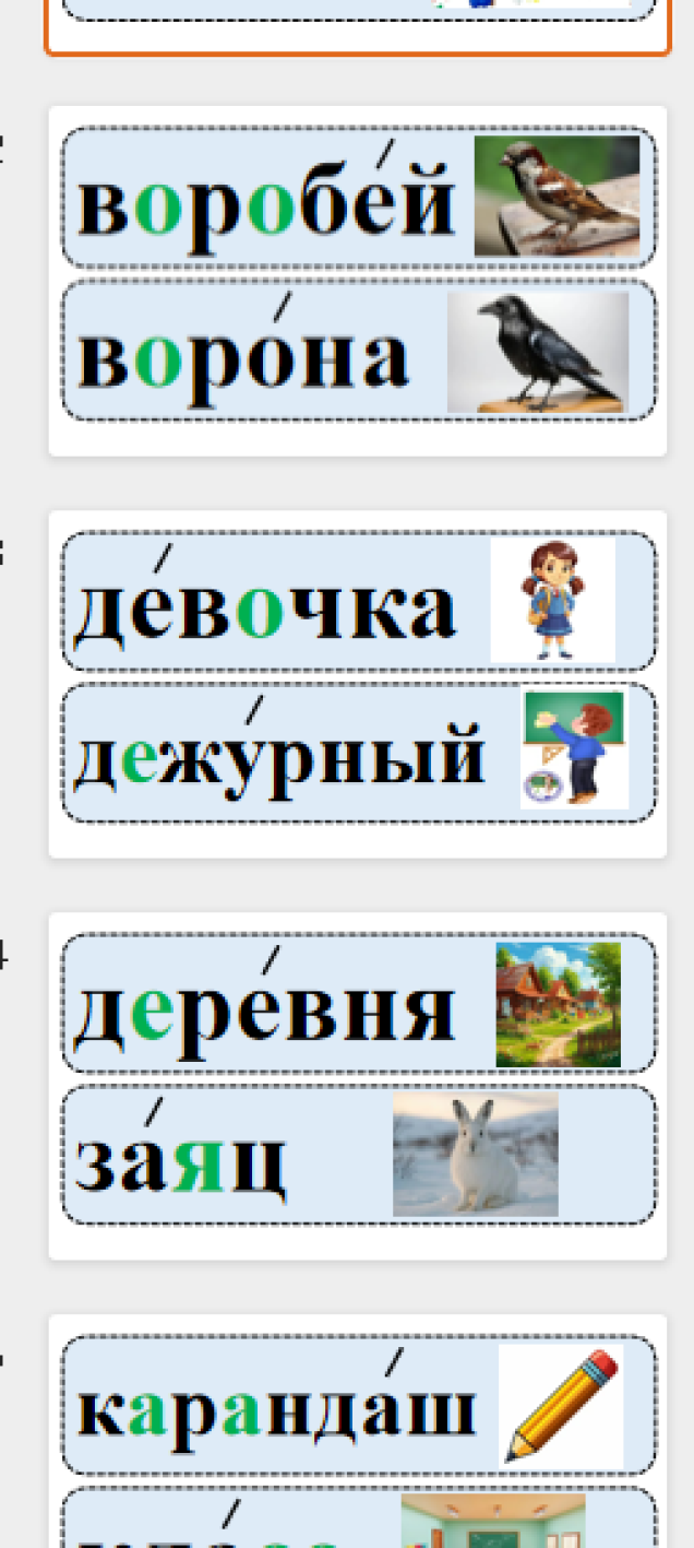 Карточки со словарными словами по русскому языку 1 класс