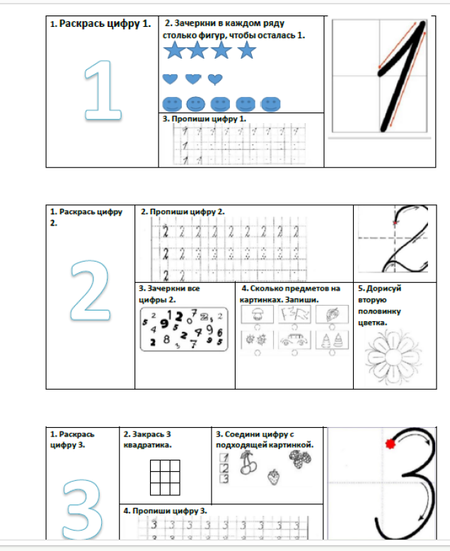Вашему вниманию представлены карточки с интересными заданиями для изучения цифр по математике, которые подойдут к любому учебнику. Они вызывают у детей интерес к предмету и делают урок разнообразным и увлекательным. В разработке 10 карточек, что позволит использовать материал на 10 уроках. Их можно использовать как на уроке, так и для рекомендаций к выполнению дома. В карточках как однотипные задания, так и разнообразные. Также есть образец написания прописной цифры. К карточкам прилагаются ответы.