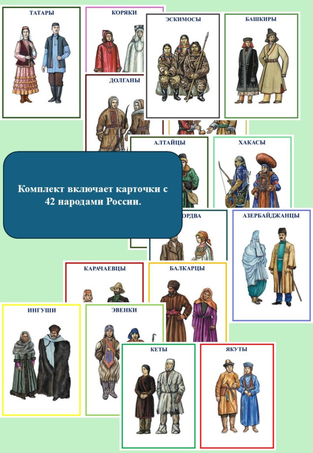 Такие карточки помогают детям познакомиться с различными народами России, их национальной одеждой.