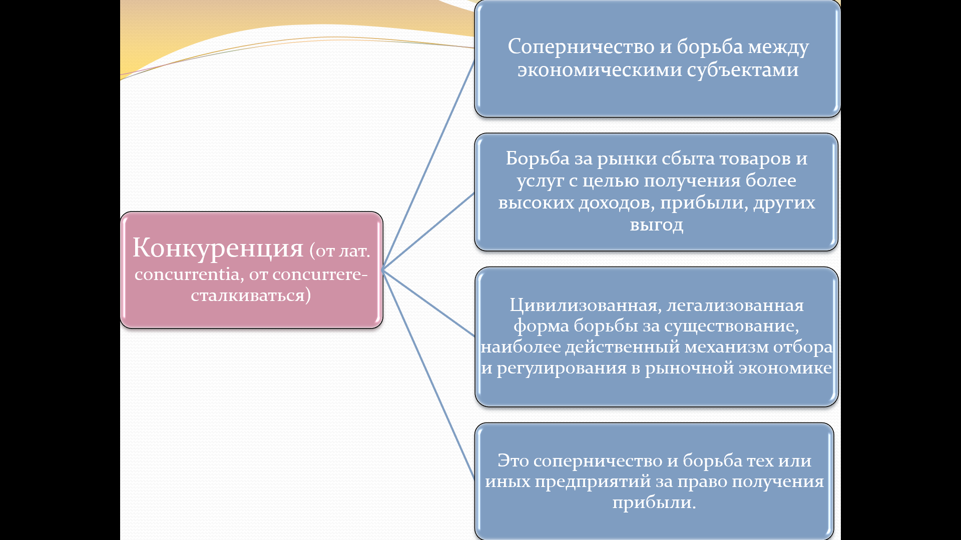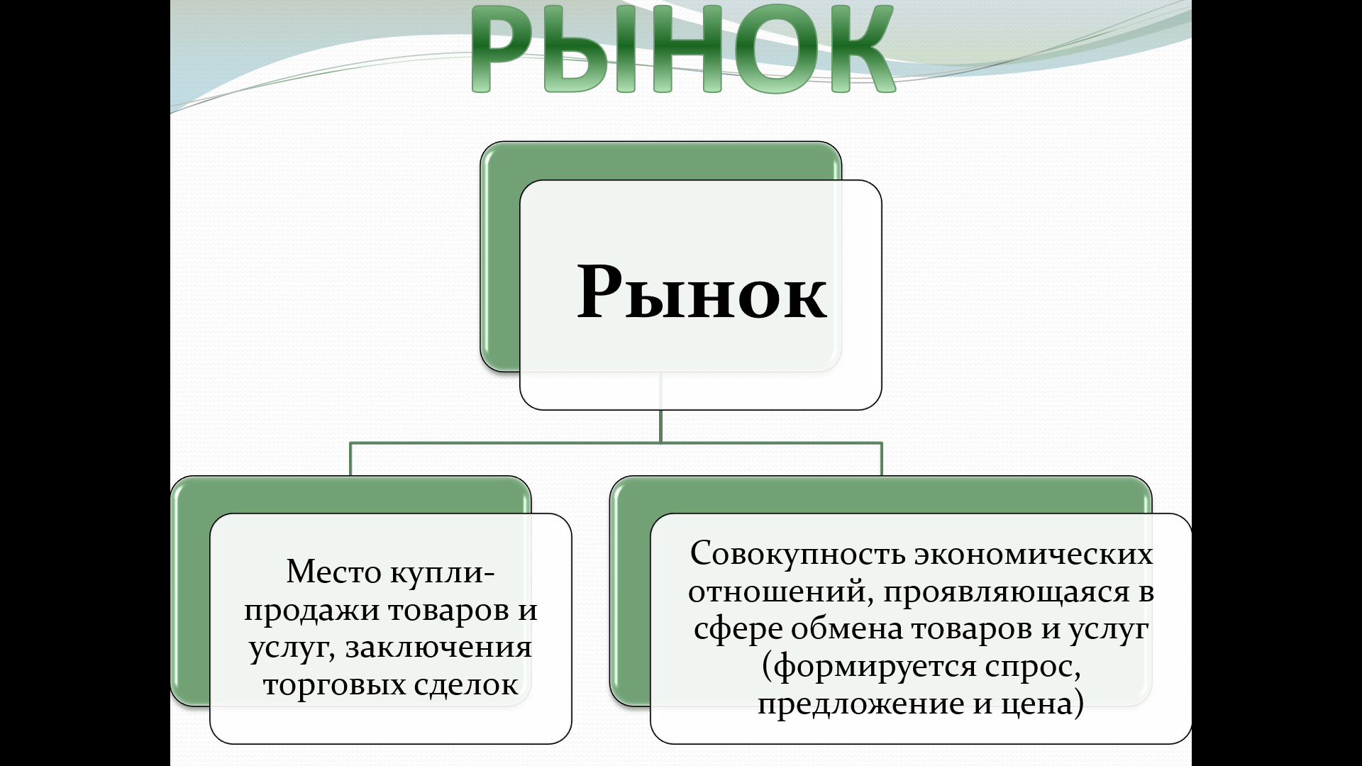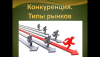 «Конкуренция. Типы рынков» — раскрывает понятие конкуренции, условия её возникновения, модели рынка (совершенная и несовершенная конкуренция, монополия, олигополия, монополистическая конкуренция), деятельность Федеральной антимонопольной службы (ФАС) и примеры монопольных объединений (ОПЕК).