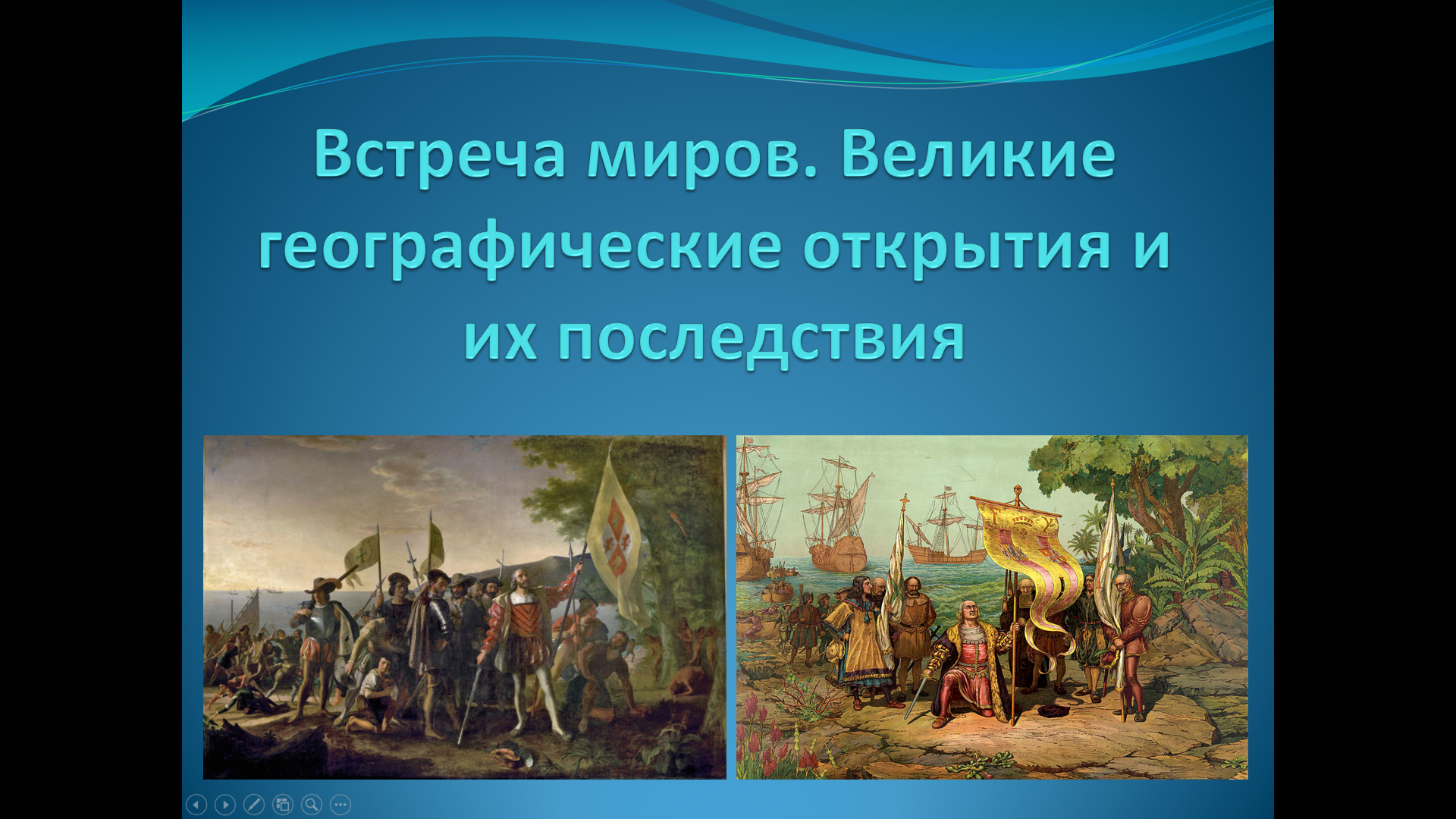 «Встреча миров. Великие географические открытия и их последствия» — рассказывает об экспедициях Христофора Колумба, Америго Веспуччи, Фернана Магеллана, завоеваниях конкистадоров (Кортес, Писарро), колонизации и её последствиях.
