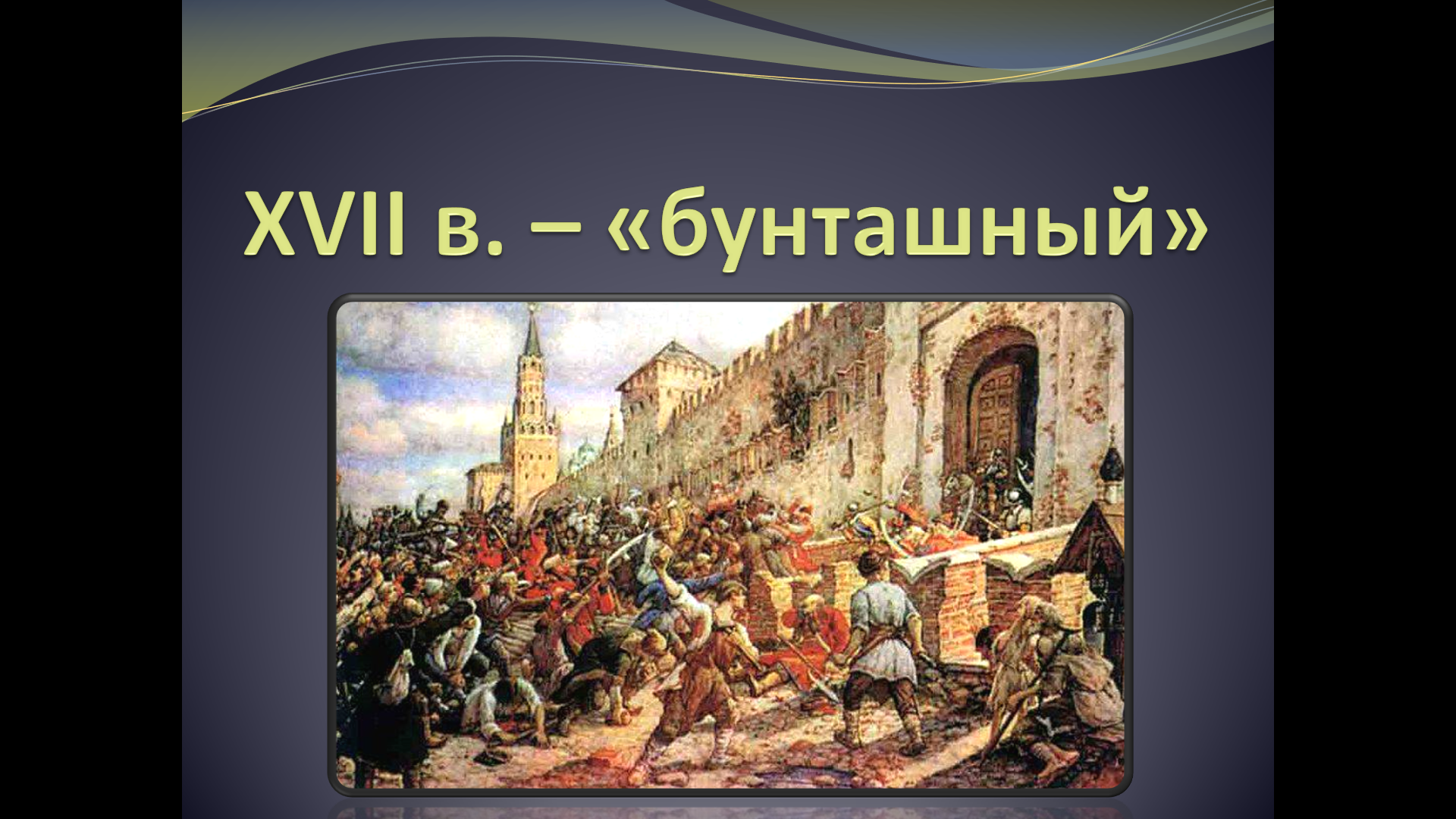 «Игра (обобщение и повторение)» — интерактивная викторина по истории России XVII века, включающая вопросы по датам, понятиям, персоналиям, архитектуре, литературе, культуре, а также раздел «Верю – не верю».
