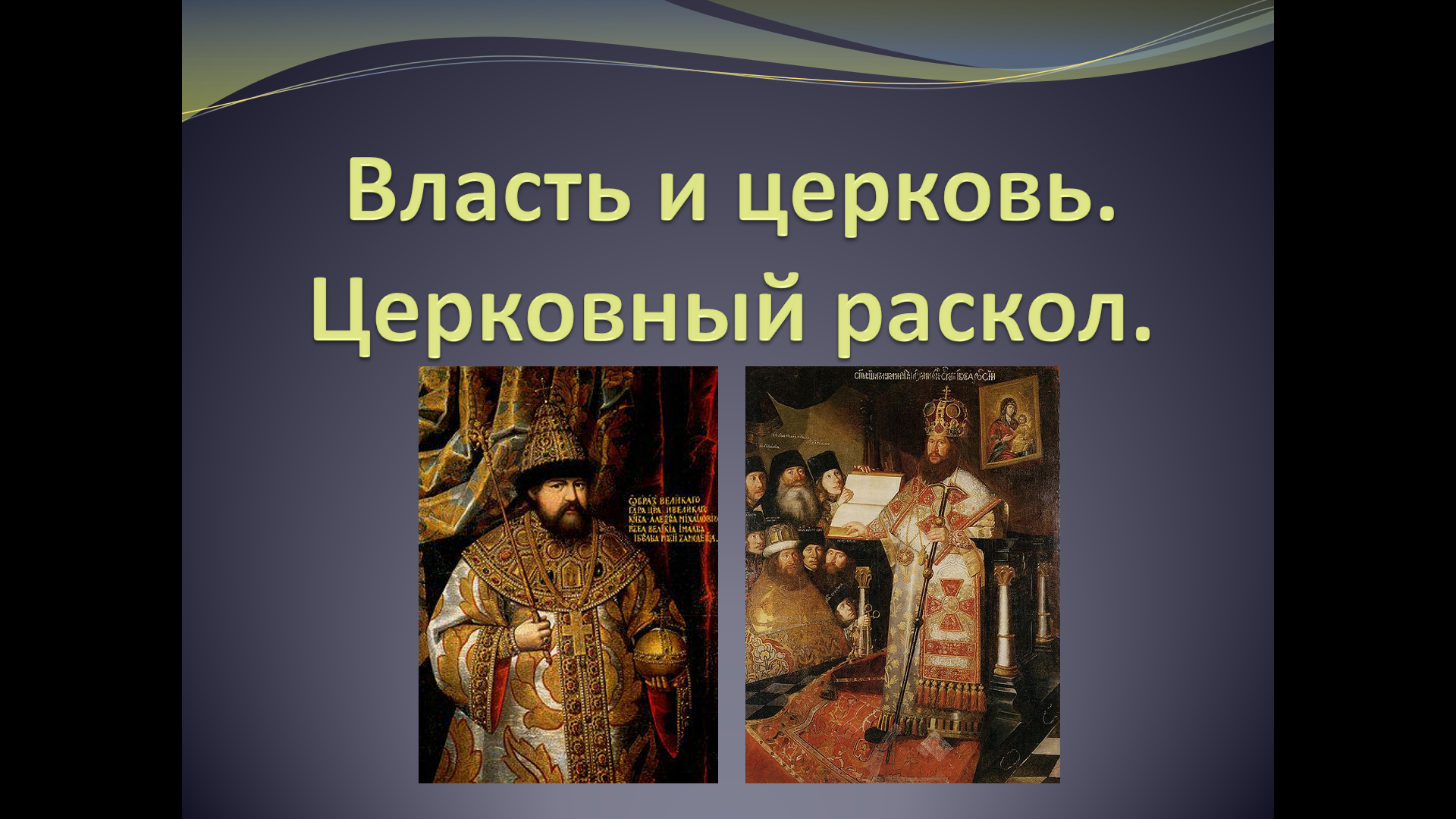 «Власть и церковь. Церковный раскол» — раскрывает причины реформ патриарха Никона, суть изменений (трехперстное знамение, исправление книг по греческим образцам), противостояние Никона и Аввакума, конфликт патриарха с царем, церковный собор 1666-1667 гг., судьбу Никона и Аввакума, гонения на старообрядцев.