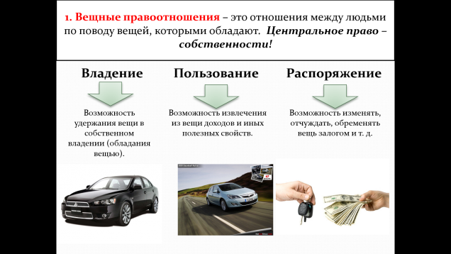 «Гражданско-правовые отношения» — раскрывает вещные и обязательственные правоотношения, правомочия собственника (владение, пользование, распоряжение), сервитут, движимые и недвижимые вещи. Включает более 15 практических ситуаций для анализа.