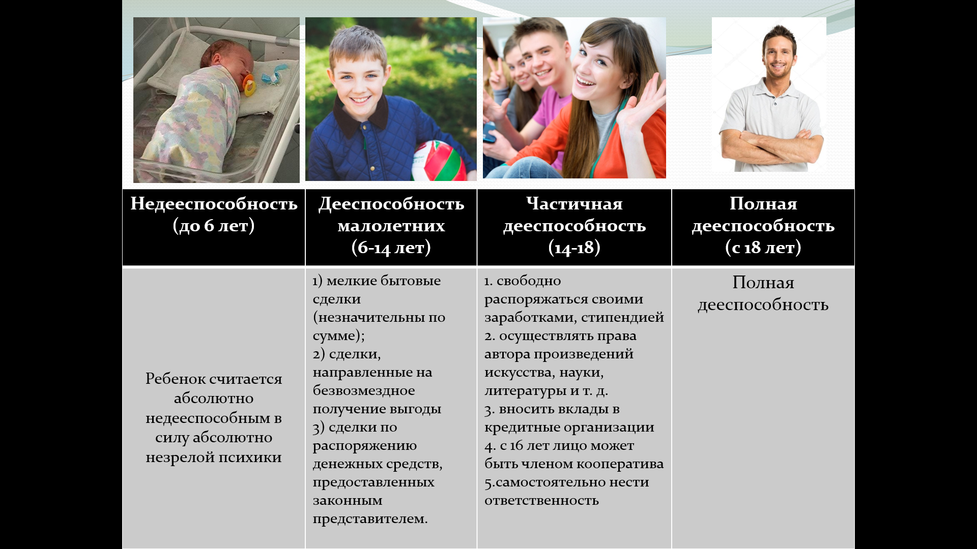 Тест «ГРАЖДАНСКОЕ ПРАВО — 1» (20 заданий) — субъекты гражданского права, правоспособность и дееспособность, права несовершеннолетних в разных возрастах, эмансипация, задания с развёрнутым ответом.