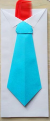 Поделка подойдет для учеников начальной школы. Она проста в изготовлении и займет не более одного урока. Учителю необходимо заранее приготовить шаблоны галстука для каждого ученика. Также заранее можно сделать заготовку для галстука (буклет) - это позволит сэкономить время на уроке.