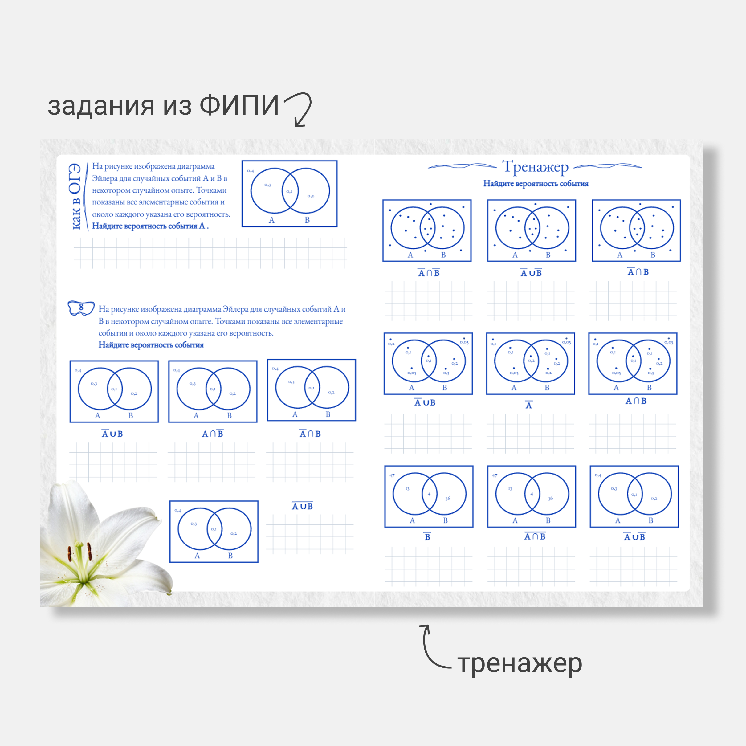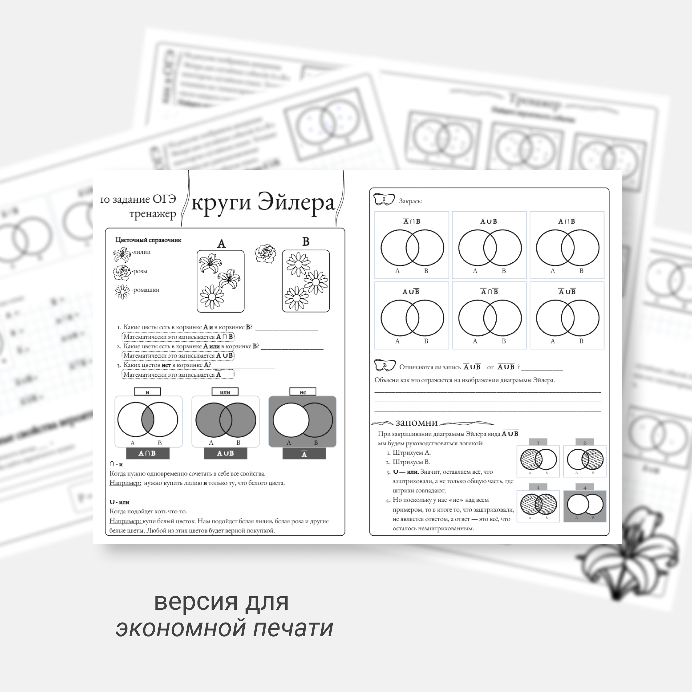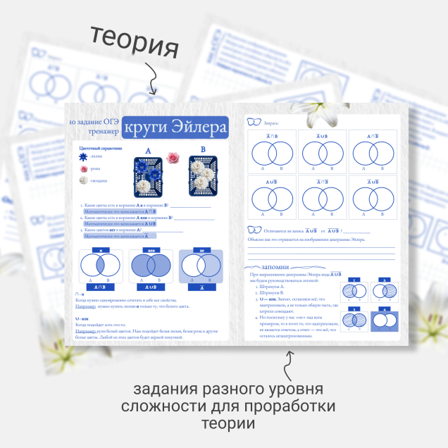 ✦ 3 первых страницы посвящены изучению темы круги Эйлера. Здесь теория и задания от простого к сложному.