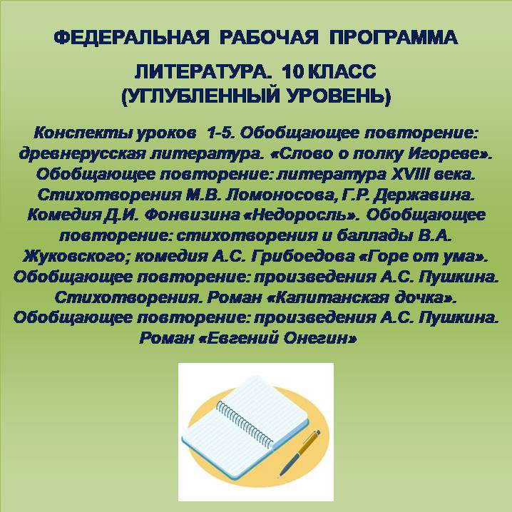 Конспекты уроков составлены в соответствии с обновленной федеральной рабочей программой по литературе для 10 класса (углубленный уровень) (2025 год)